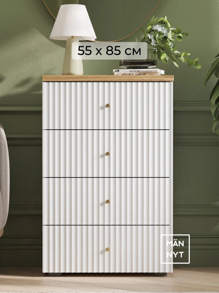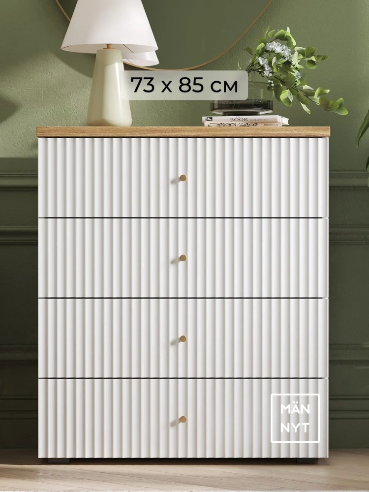 Элегантный столик с двумя выдвижными ящиками в современном прочтении ар-деко. Корпус выполнен в светлом тоне, а рельефные вертикальные фасады придают ...