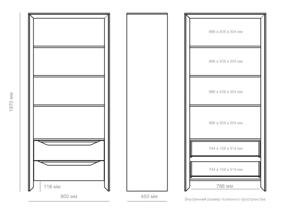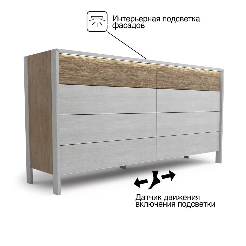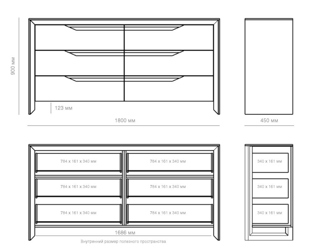 Универсальная система для хранения одежды, постельных принадлежностей или аксессуаров. 7 ящиков открываются с помощью направляющих скрытого монтажа. М...