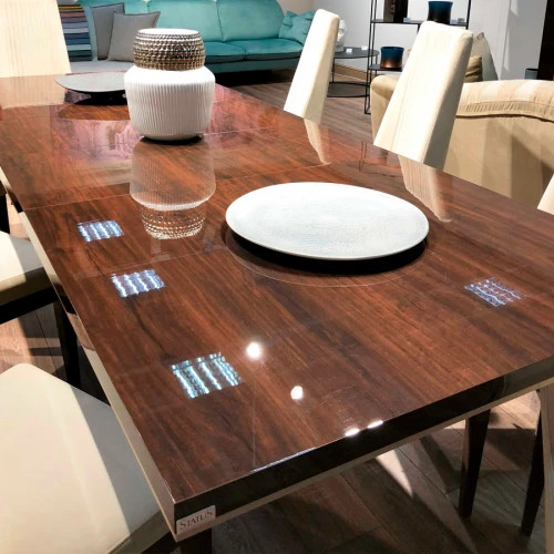 Стол обеденный с одной вставкой из коллекции EVA. Стол имеет раскладной механизм и возможность раскладываться до 225 см.