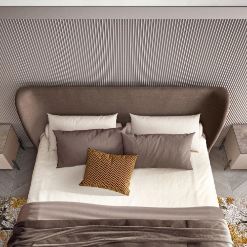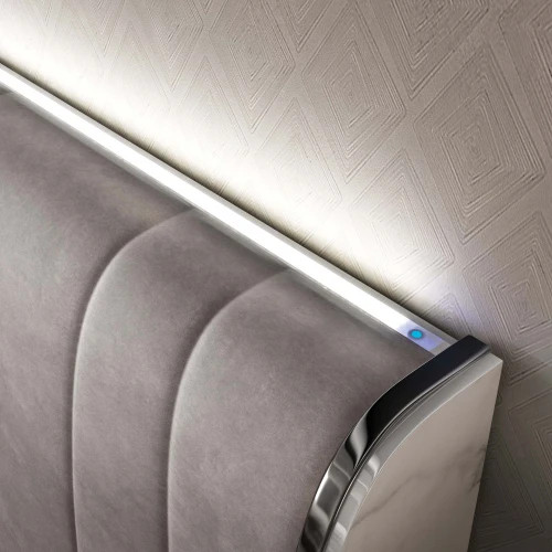 Кровать из коллекции Nora со спальным местом 180х200 см. Изголовье имеет встроенную деликатную подсветку.