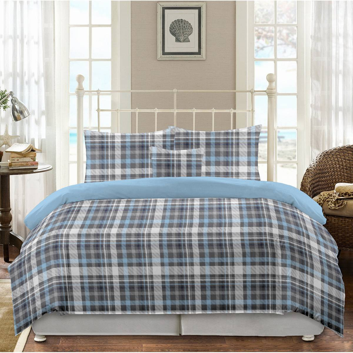 Комплект постельного белья Gipfel Alan выполнен в серо-голубых тонах с орнаментом в клетку. Сочетание этих спокойных цветов добавляет изысканности и гармонии интерьеру спальни и располагает к безмятежному отдыху.