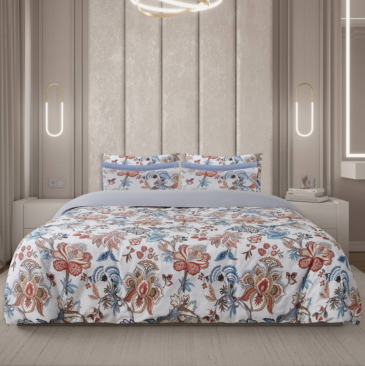 Комплект постельного белья Gipfel Amanda выполнен в коралловых оттенках с ярким восточным орнаментом. Цвет простыни - глубокий синий. Сочетание этих цветов добавляет изысканности и гармонии интерьеру спальни и располагает к безмятежному отдыху.