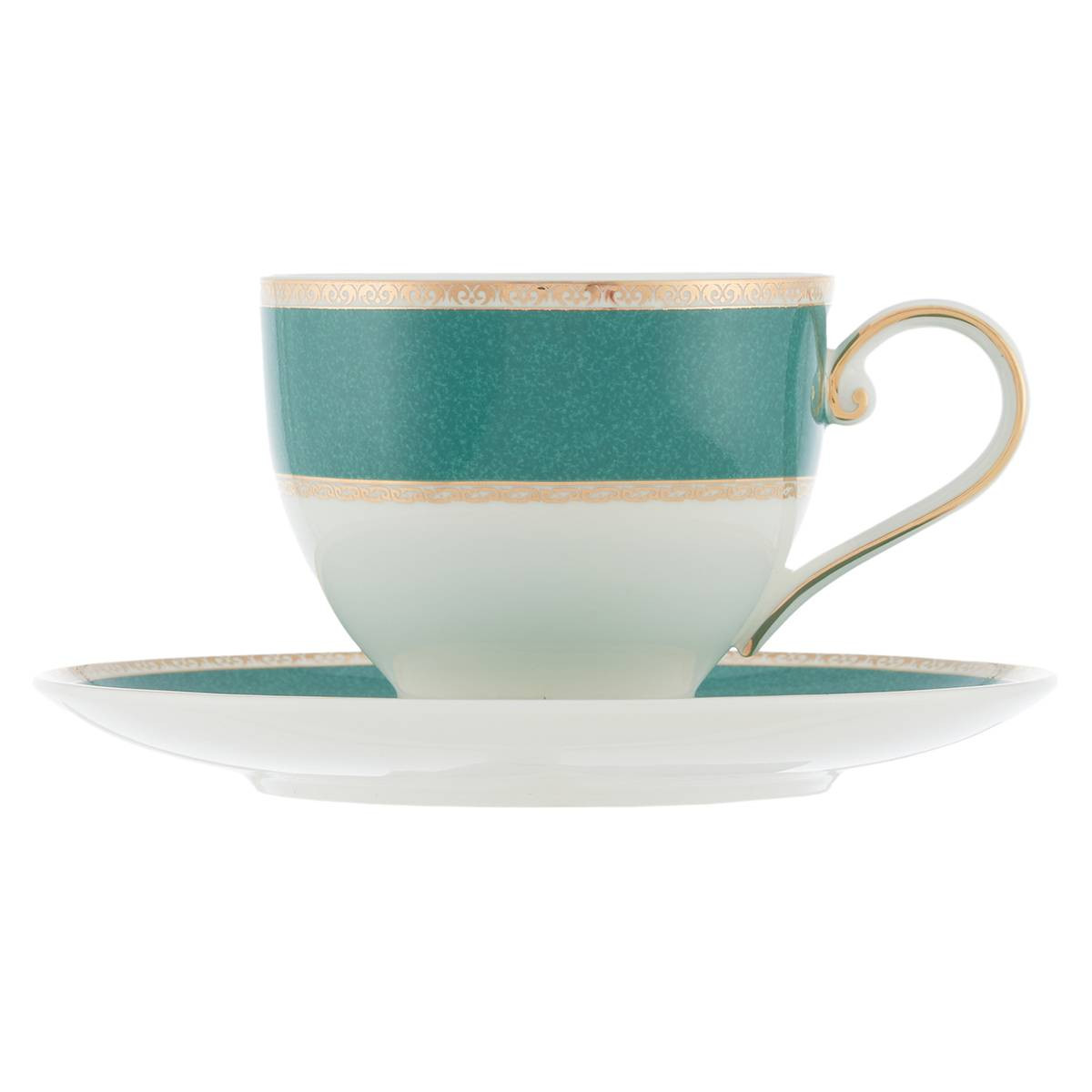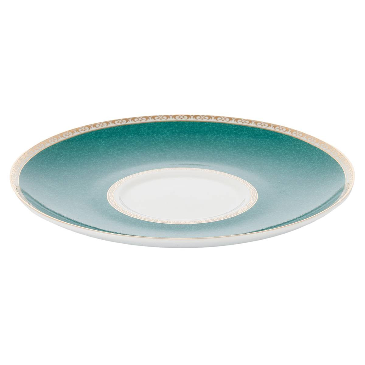 43253 GIPFEL Сервиз чайный MORITZ 15 пр.: чайник заварочный 950 мл, молочник 220 мл, сахарница 250 мл, чашка 250 мл (6 шт.), блюдце 15 см (6 шт.). Материал костяной фарфор. Цвет: бирюзовый.