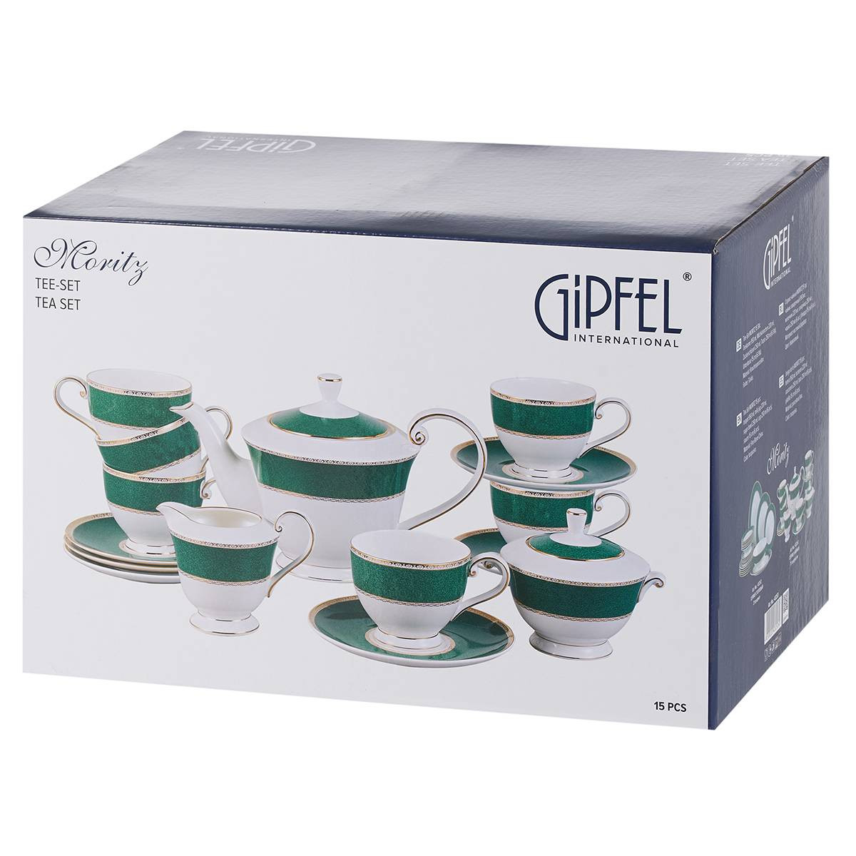 Сервиз чайный Gipfel Moritz 43253 15 предметов. Сервиз рассчитан на 6 персон. В наборе: чайник заварочный 950 мл, сахарница 250 мл, молочник 220 мл, чашка 250 мл (6 шт.), блюдце 15 см (6 шт.).