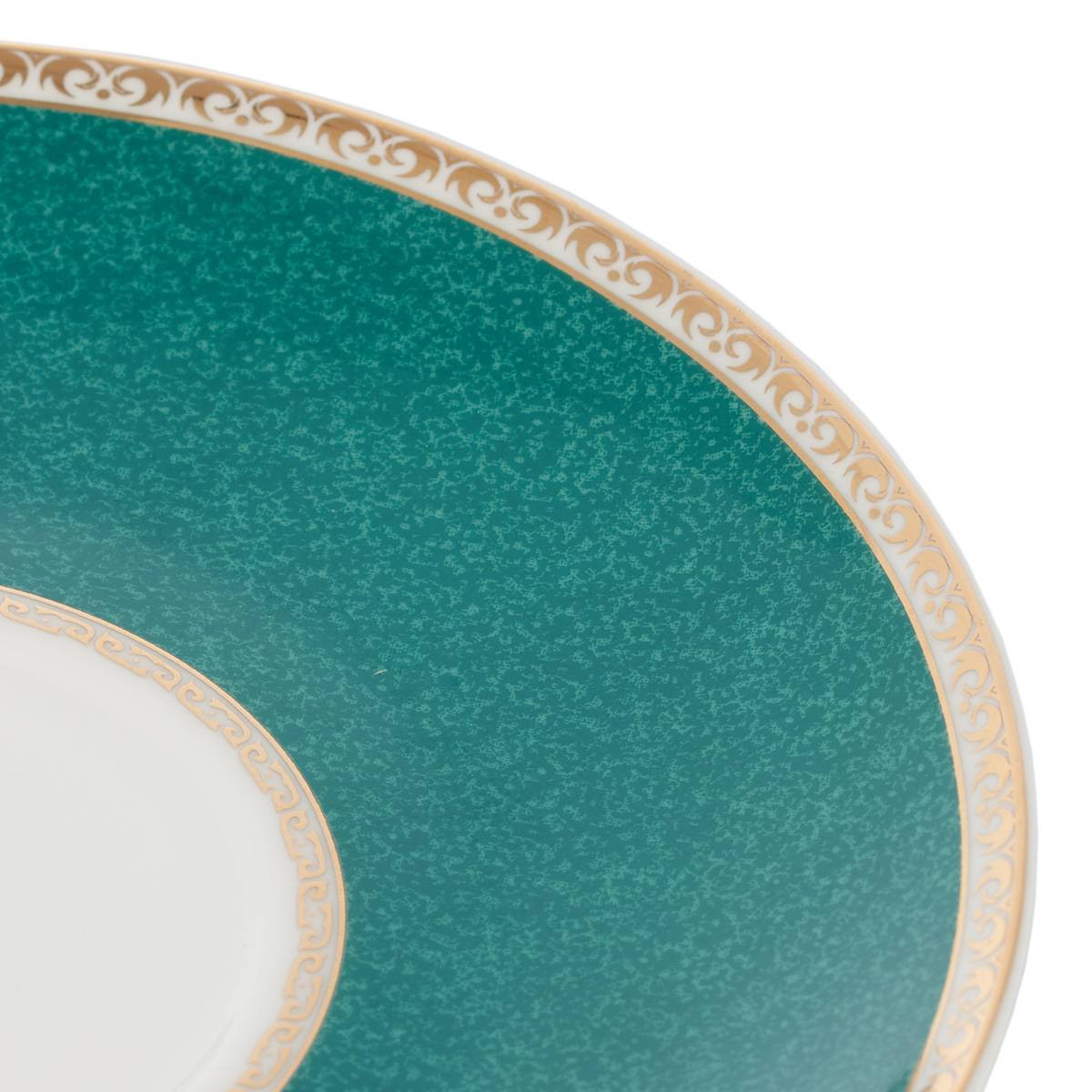 Фарфоровая посуда – это, прежде всего, эстетическое наслаждение. Ее гладкая поверхность и стильный дизайн создают великолепное визуальное впечатление. Каждая деталь фарфорового сервиза Gipfel Moritz тщательно продумана. Декор посуды выполнен в византийском стиле: белоснежную поверхность изделий украшает ленточный орнамент насыщенного бирюзового цвета. Золотистый ажурный кант дополняет композицию. Утонченные формы, элегантный декор, изумительный цвет и глянцевая поверхность делают посуду коллекции Gipfel Moritz великолепным украшением стола вне времени.