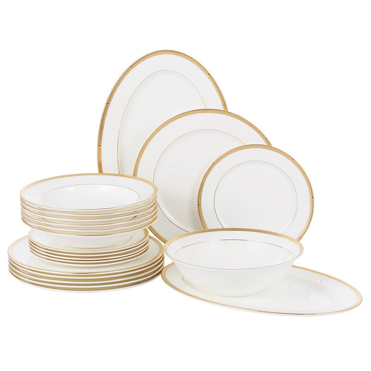 43254 GIPFEL Сервиз столовый ARLETT 21 пр.: тарелка суповая 23 см (6 шт.), тарелка обеденная 26 см (6 шт.), тарелка закусочная 20 см (6 шт.), тарелка сервировочная 36х24 см (2 шт.), салатник 1400 мл . Материал: костяной фарфор. Цвет: белый.