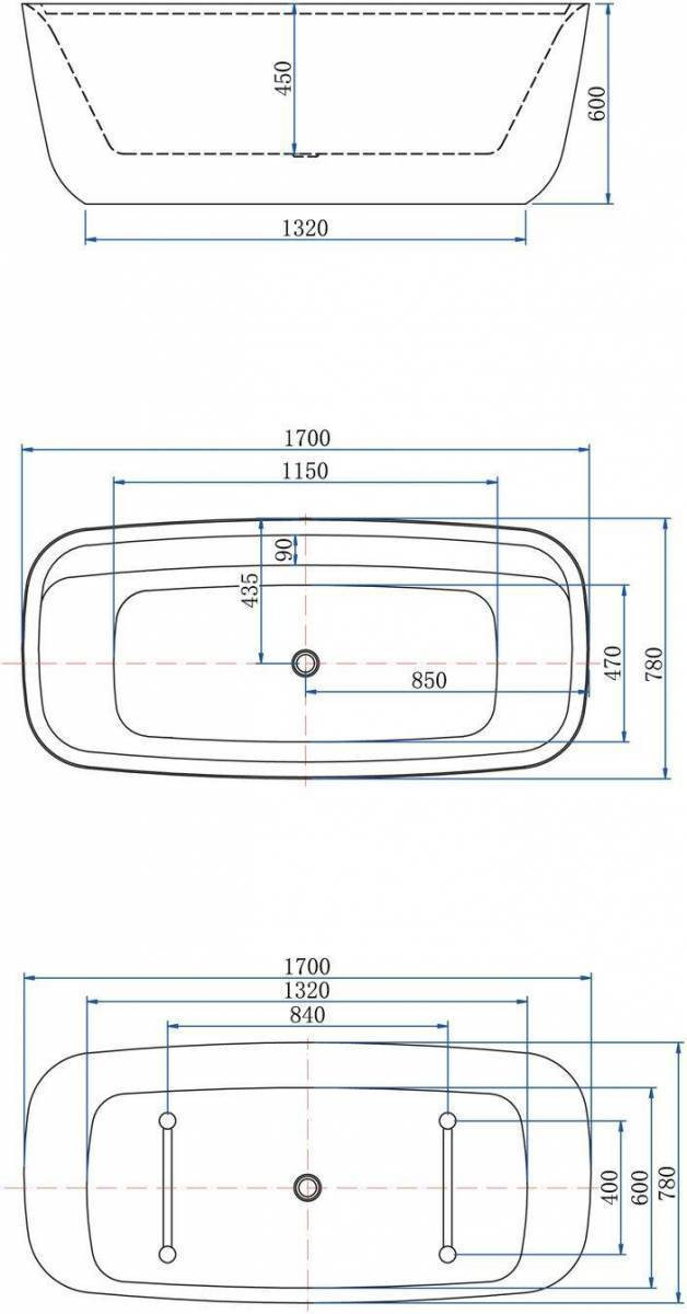 Акриловая ванна Aquanet Family Fine 170x78 95778 Matt Finish (панель Black matte)