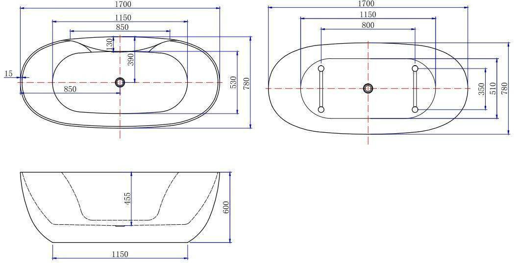 Расположение слива-перелива: По центру