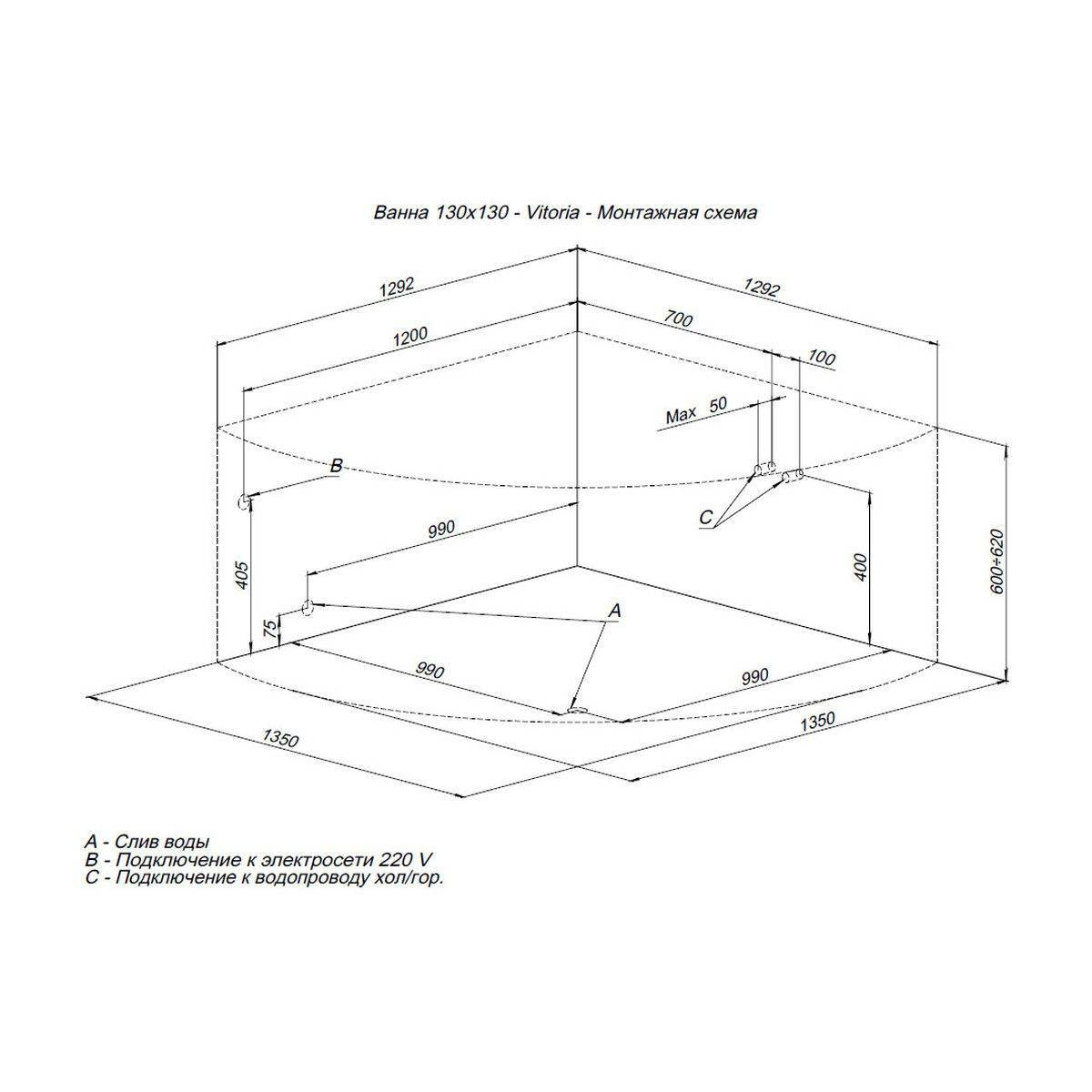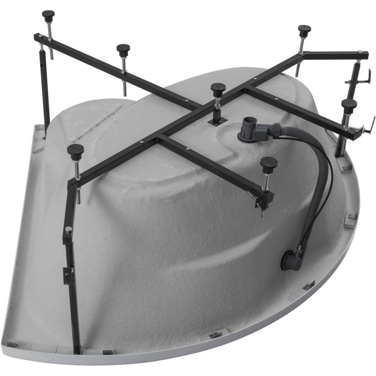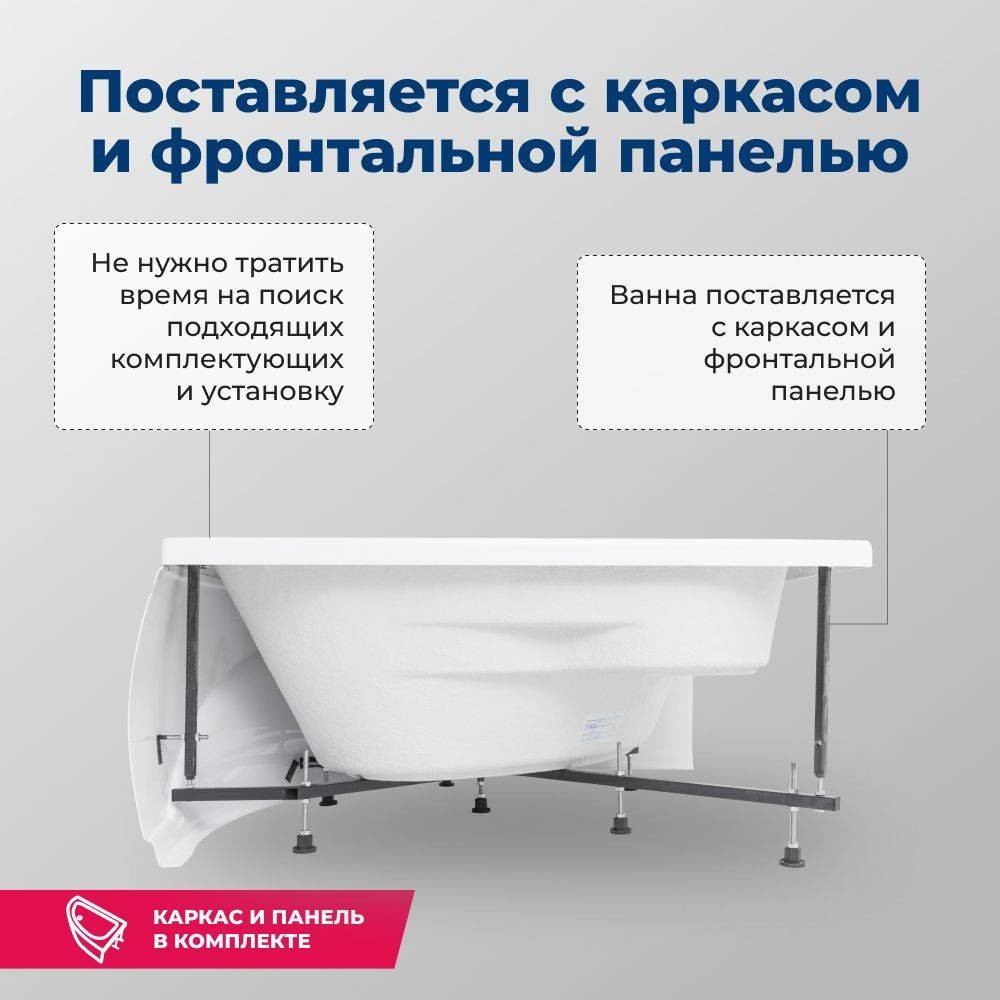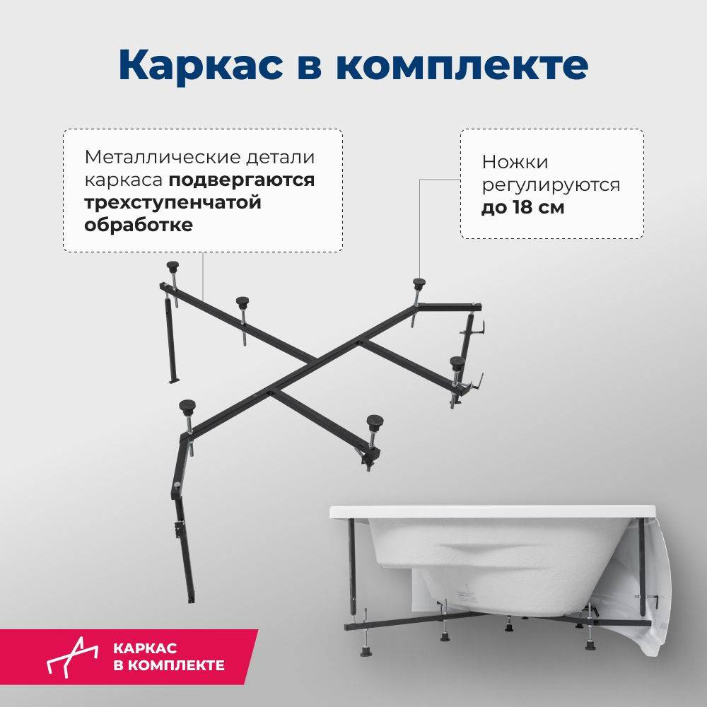 Акриловая ванна Aquanet Vitoria 3 в 1, в комплектацию товара уже входит фронтальная панель и каркас. Угловая ванна Aquanet Vitoria 135x135, без гидромассажа. Глянцевая белоснежная поверхность акриловой ванны вызывает восхищение и желание прикоснуться. Материал обладает теплоемкостью и антибактериальными свойствами и устойчив к появлению внешних дефектов. Ванна усилена двойным составом стекловолокна и полиэфирной смолы, в местах нагрузки имеется дополнительное укрепление в виде закладных из МДФ-плиты. Ванна уже установлена на жесткий сварной каркас из металлического профиля. Металлические детали каркаса подвергаются трехступенчатой обработке, когда сначала профильная труба проходит абразивную зачистку на специальном станке, после чего готовые детали обрабатывают каустической содой, и, просушив, покрывают с помощью электростатического распылителя молотковой краской по металлу. Это гарантирует равномерность окрашивания и стойкость покрытия. Дополнительно необходимо выбрать слив-перелив с сифоном.