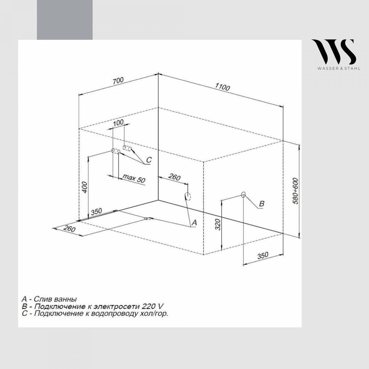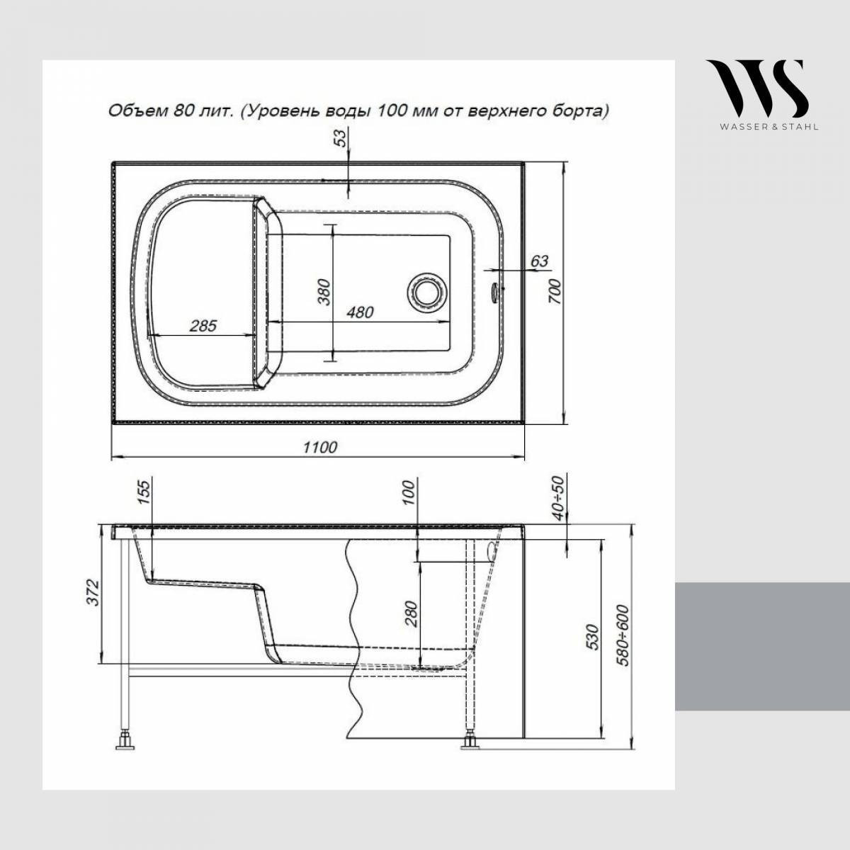 Акриловая ванна WASSER & STAHL LUX 110x70 с каркасом