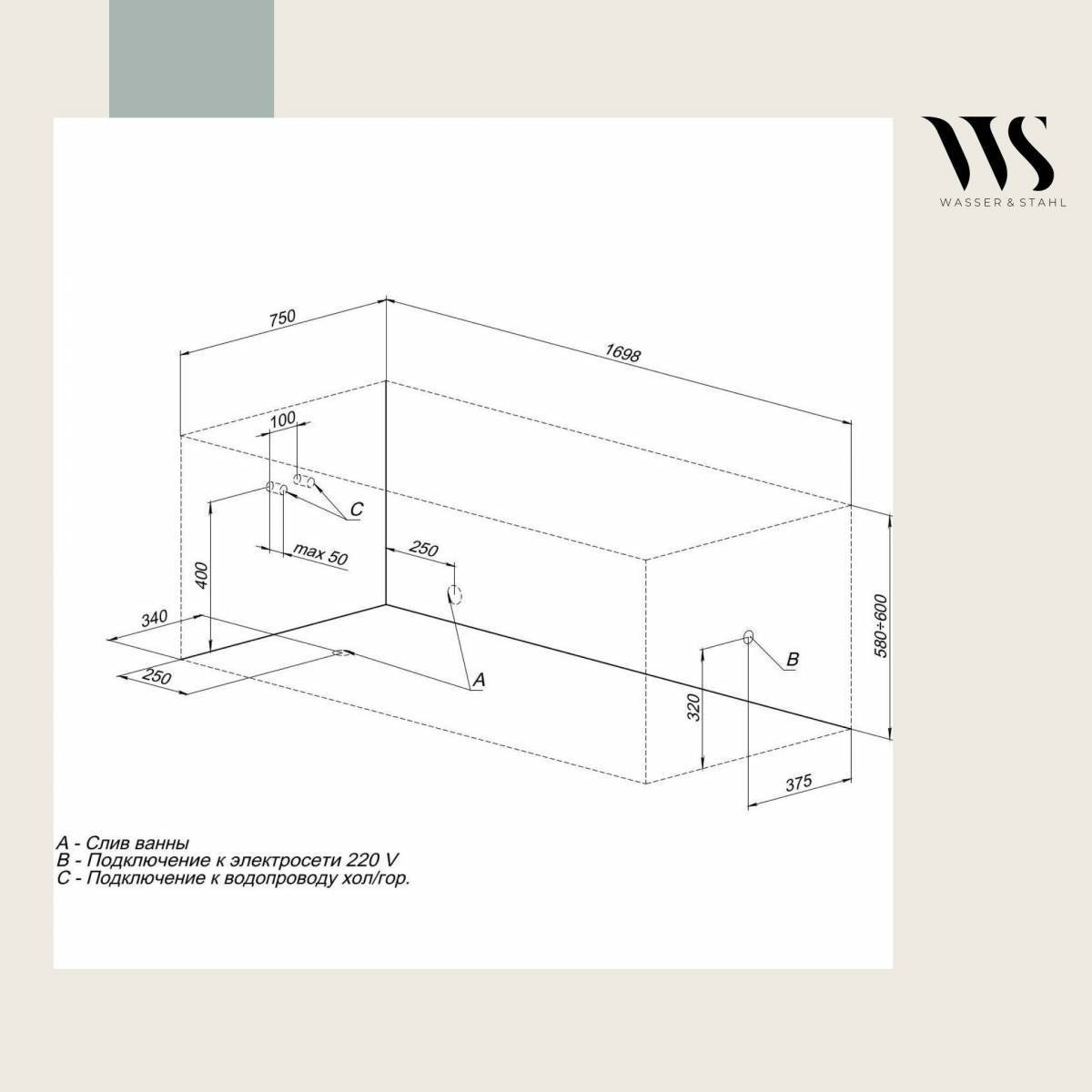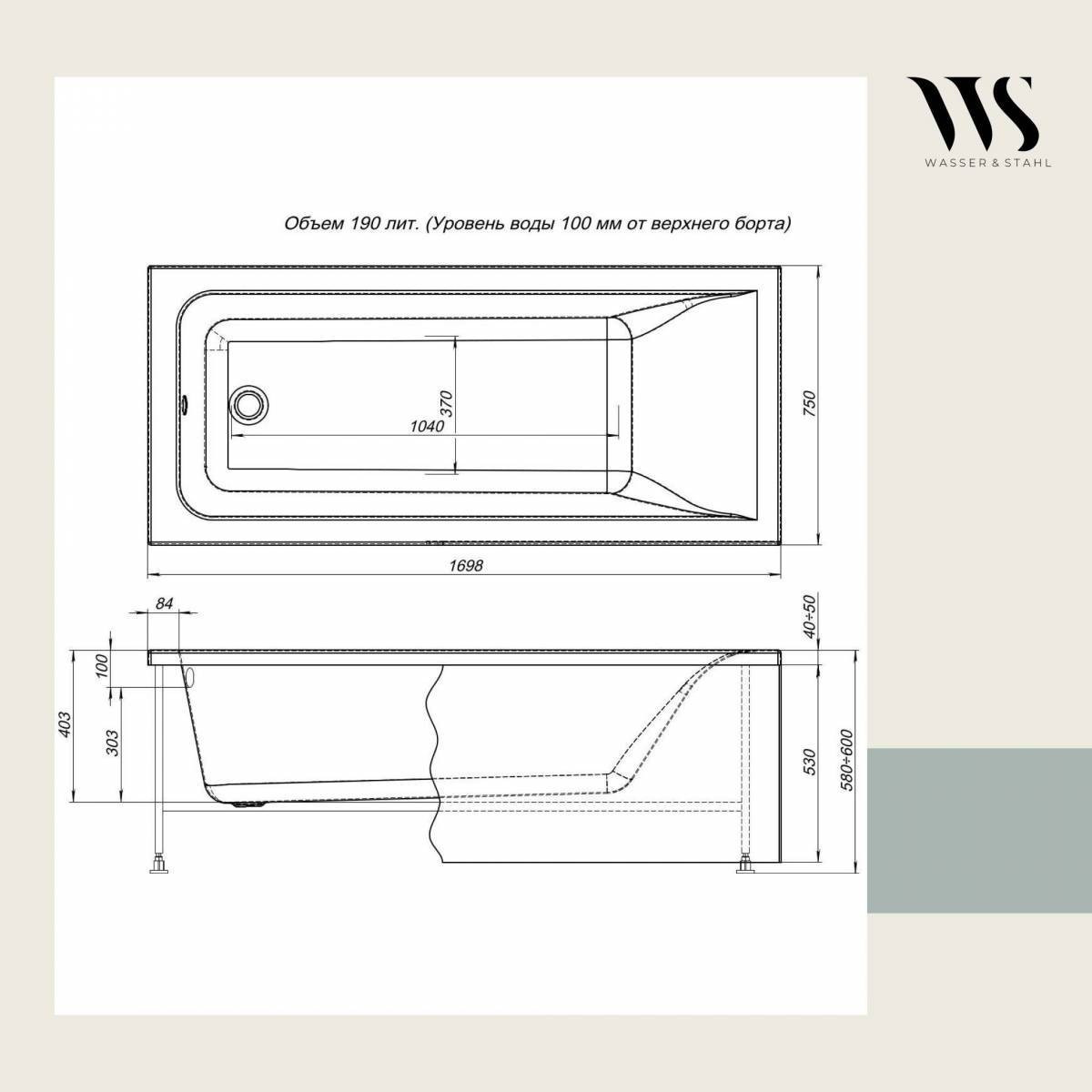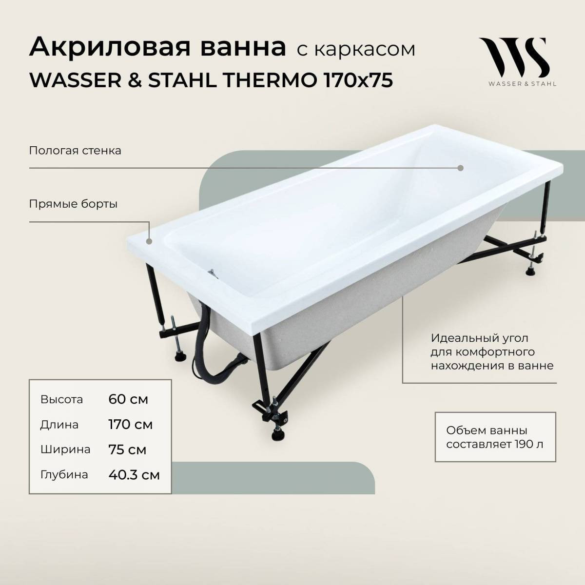 Акриловая ванна WASSER & STAHL THERMO 170x75 с каркасом