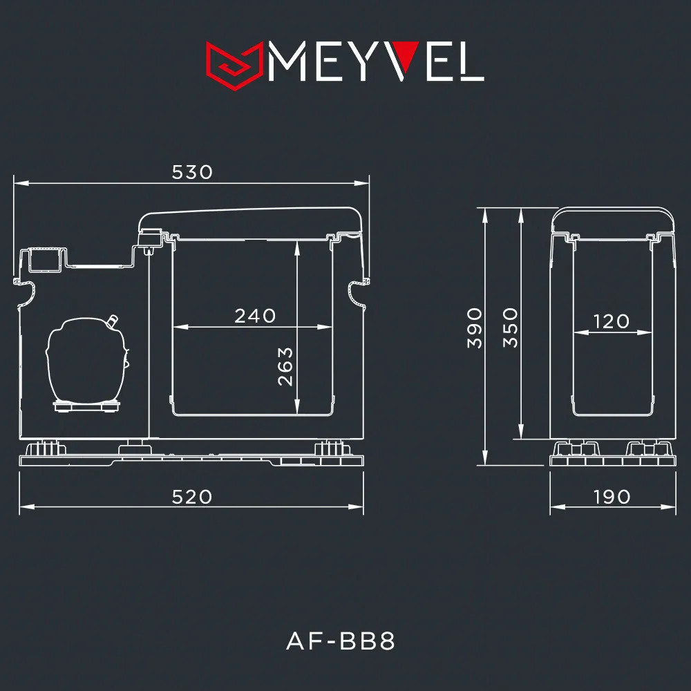 Компрессорные холодильники Meyvel встраиваются в автомобили и позволяют обеспечить пользователя продуктами питания охлажденными, а потому сохраняемыми на длительный период времени. электроника холодильника следит и за температурой, и за состоянием электропитания и рабочих узлов. Есть дисплей для наблюдения за работой агрегата. Приняты эффективные меры по теплоизоляции.