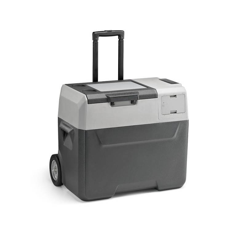 Холодильник способен работать при наклонах до 45° даже во время движения. Владельцы лодок и джипов, охотники и любители рыбалки – вам понравится. Для удобства перемещения модель оснащена телескопической ручкой и колесами. Крышка холодильника может сниматься. Это пригодится для удобного помещения продуктов в него или при его обслуживании. Вы можете использовать автохолодильник на пикнике в качестве стола. На крышке для удобства есть два подстаканника. Охлаждение и заморозка продуктов Холодильник включает в себя функцию быстрого охлаждения (снижение температуры до - 15° C). В это время компрессор работает в максимальном режиме.
