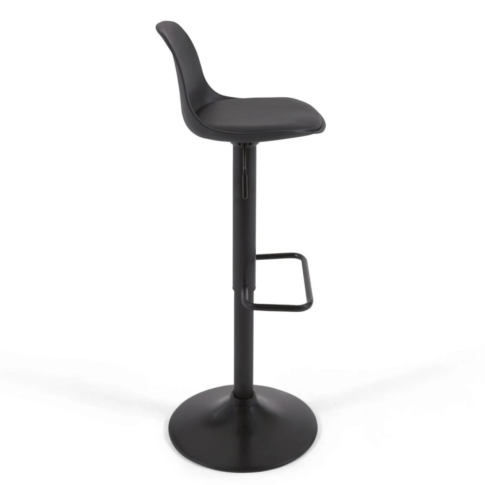 Стул имеет сборную конструкцию, которая состоит из металлической стойки с черным матовым покрытием и сиденья в обивке из кожзама. Покрытие защищает стул от негативного воздействия внешней среды - влаги, ультрафиолета. Стойка имеет эргономичные дополнения - широкое основание для устойчивости и рамочную подставку для ног. Кроме того, она регулируется по высоте до 22 см. Использованный кожзам обладает высокой износостойкостью. Он не впитывает запахи. Максимальная весовая нагрузка на стул не должна превышать 130 кг.