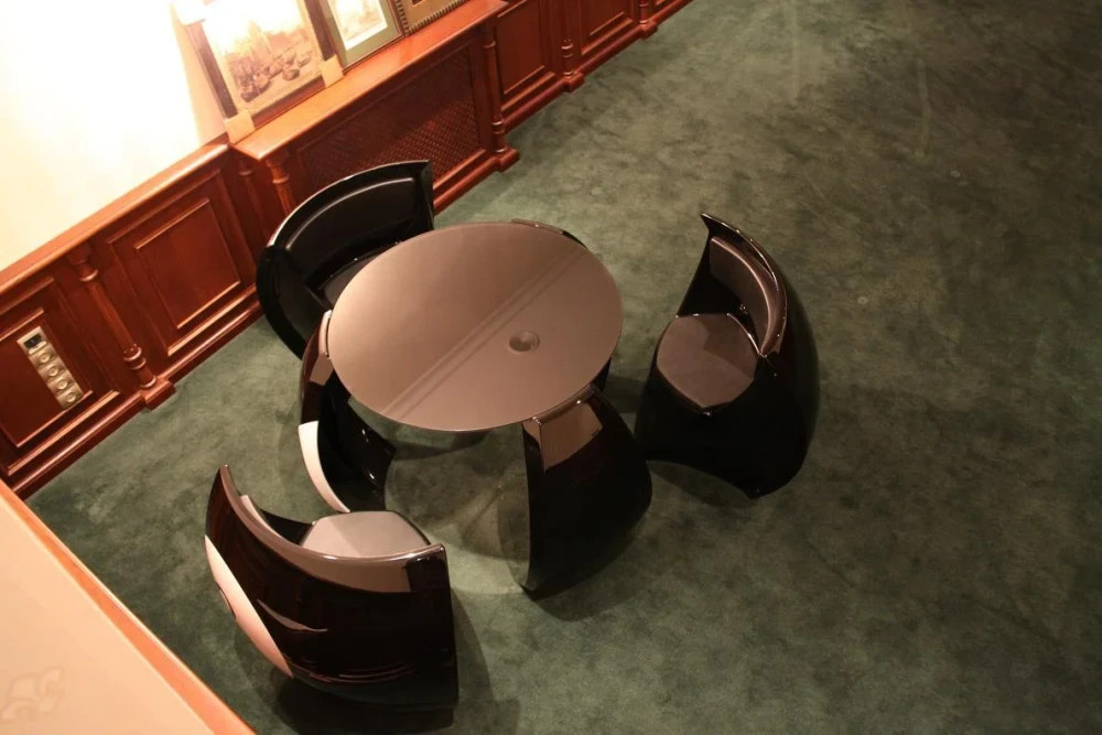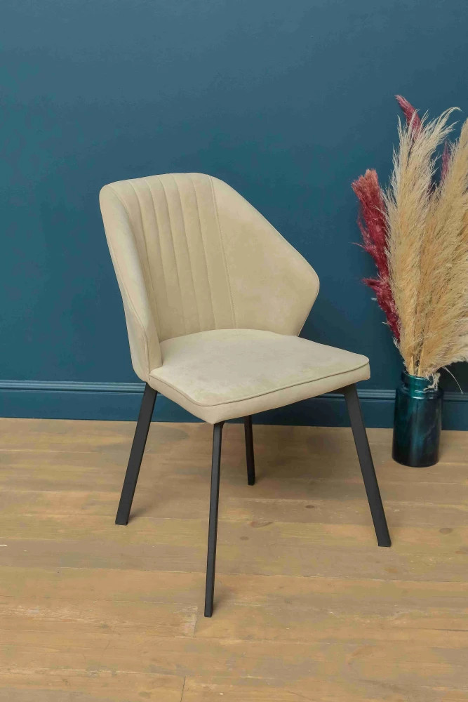 Барный стул сборный, состоит из металлической стойки и мягкого каркасного сиденья. Высота спинки – 21 см. Сиденье обито прочной синелью, цвет которой изготовитель предлагает в нескольких вариантах. В наличии светло-бежевая модель. Синель – это прочная износостойкая ткань, которая выдерживает интенсивную эксплуатацию и легко поддается чистке. Однако абразивы и отбеливатели следует исключить. Стойка окрашена в белый или черный цвет (зависит от выбранной модели), имеет круглое основание диаметром 43 см и рамку для ног толщиной 16 мм. Ручка для регулировки высоты расположена под сиденьем справа.Стул также наделен опцией вращения вокруг своей оси.