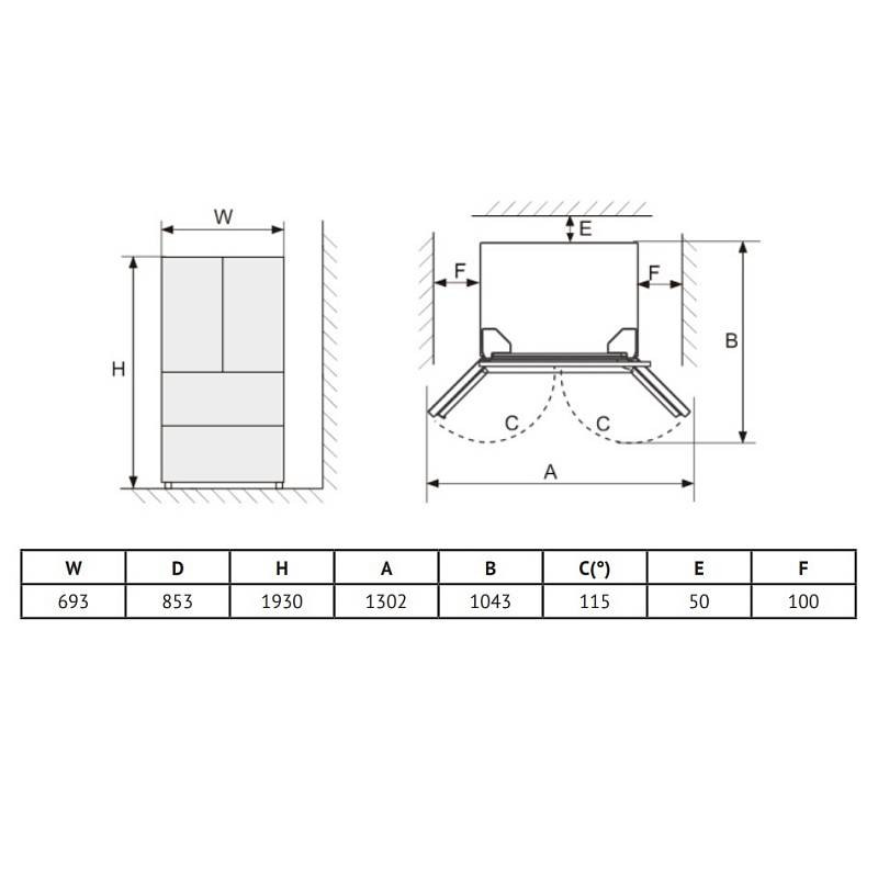 Габариты (ВхШхГ) (мм): 1930x853x693