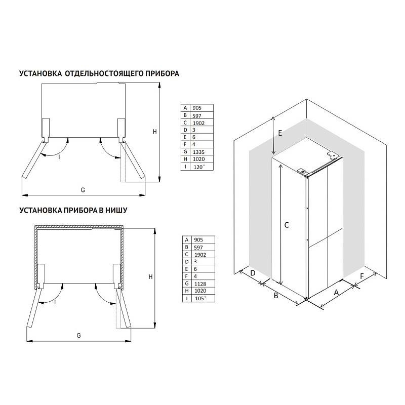 Габариты (ВхШхГ) (мм): 1905х910х600