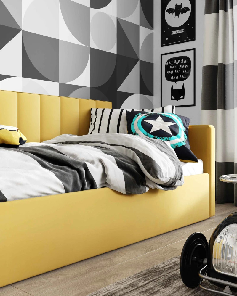 Современная и стильная кровать Oliver создана для комфортного и безопасного сна детей. Мягкое изголовье с вертикальной стяжкой и лаконичный дизайн делают эту модель универсальным решением для любой детской комнаты. Дополнительное спальное место, выдвижные ящики или подъемный механизм — выберите нужную конфигурацию под ваши задачи. А водоотталкивающие ткани и съёмный бортик обеспечивают лёгкость ухода и безопасность ребёнка. Любую модель можно изготовить под индивидуальные размеры и в обивке на ваш выбор — от велюра до рогожки.