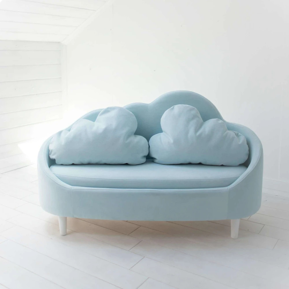 Интерьерный детский диванчик Облачко. Выполнен из массива, ППУ, мебельного велюра легкого ухода. Размеры: ширина 1300 мм, высота сидения 350 мм, глубина 550 мм, вес 30 кг.