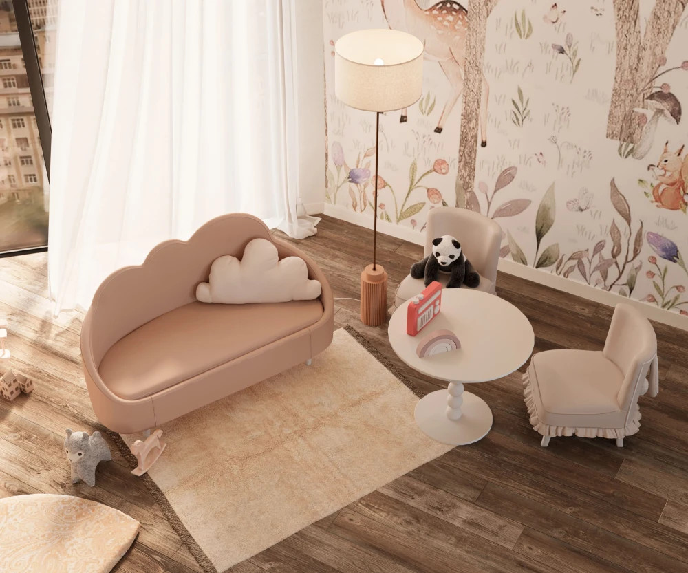 Интерьерный детский диванчик Облачко. Выполнен из массива, ППУ, антивандального моющегося мебельного велюра crush 02 бежево-розовый. Размеры: ширина 1300 мм, высота сидения 350 мм, глубина 550 мм, вес 30 кг. Доставка диванчика в собранном виде, ножки легко вверчиваются. В комплекте декоративная подушка. Станет невероятно уютным дополнением комнаты.