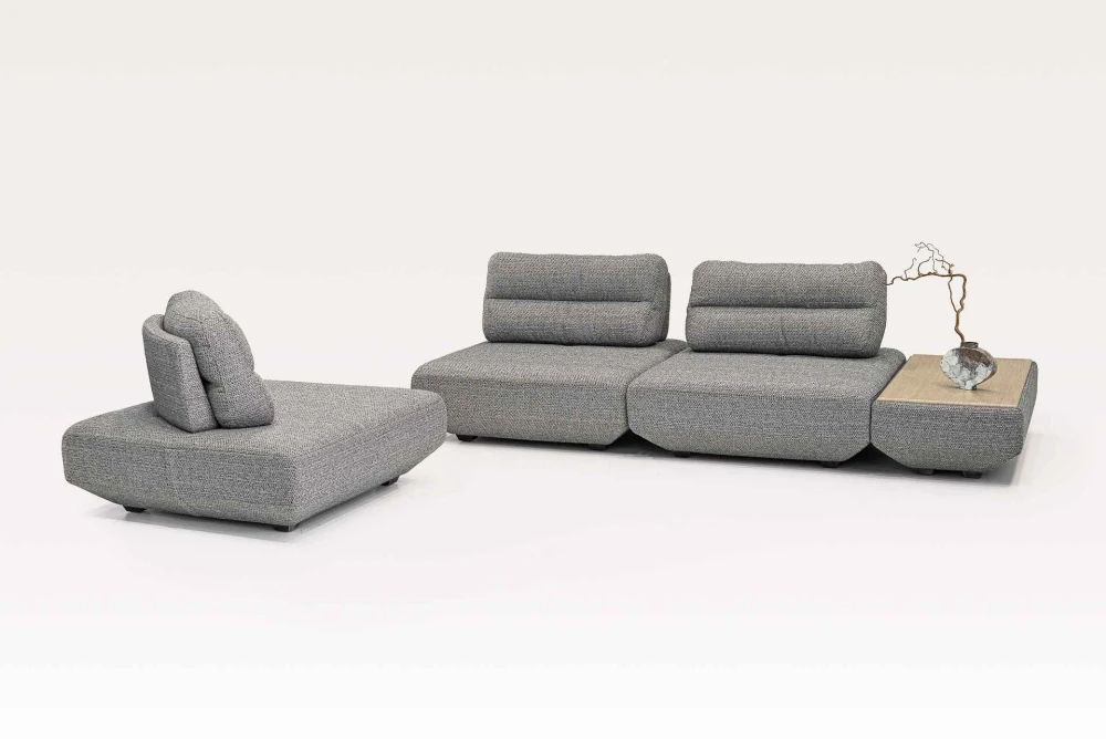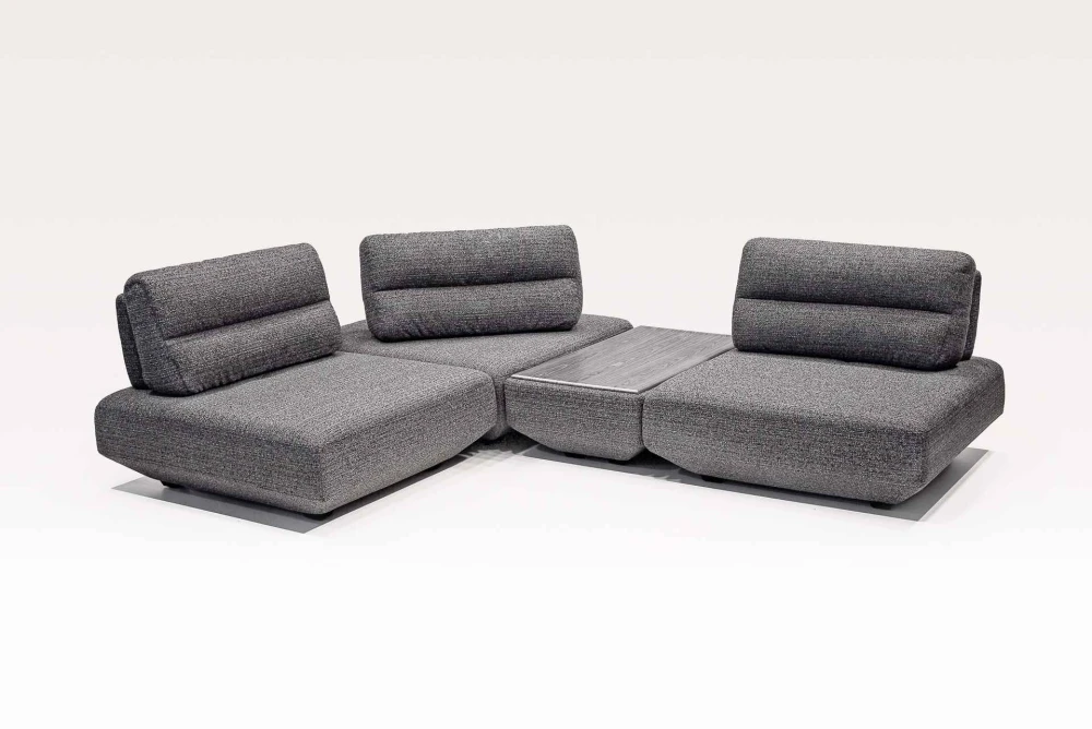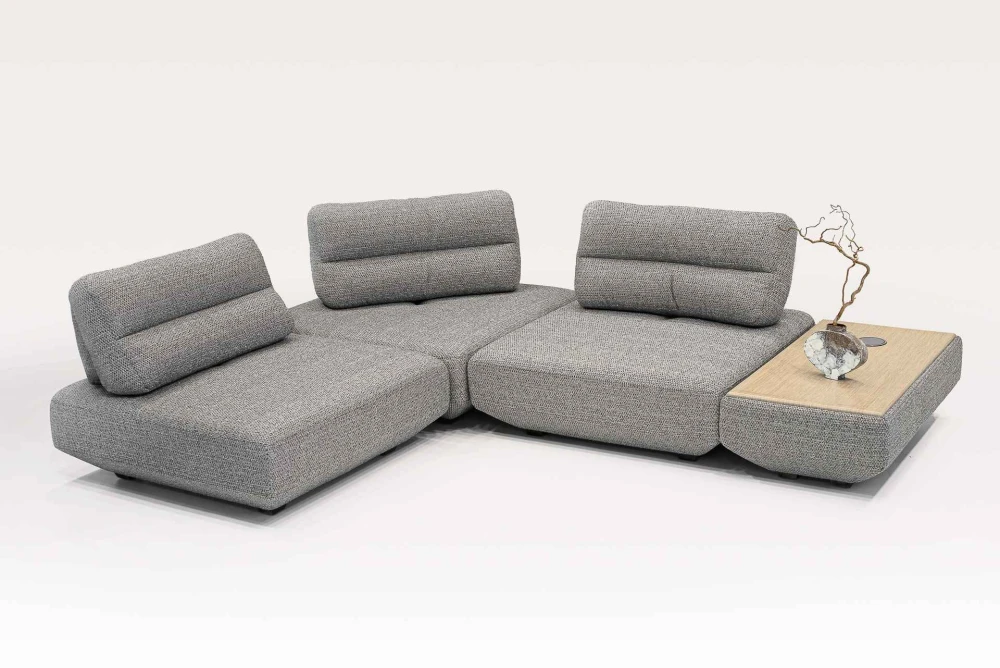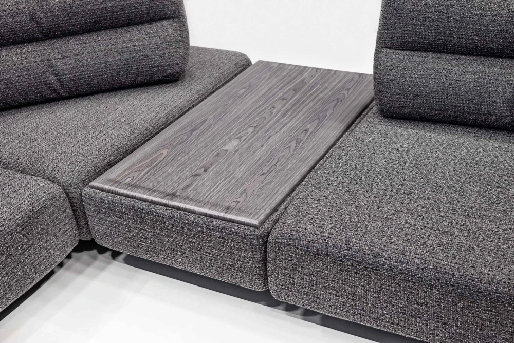 Открой для себя функциональность с современным диваном, состоящим из прямых и угловых модулей, которые не скреплены между собой, что позволяет легко менять конфигурацию. Шагающие спинки обеспечивают регулировку глубины посадки, а встроенный блок беспроводной зарядки в столике добавляет удобство и комфорт.