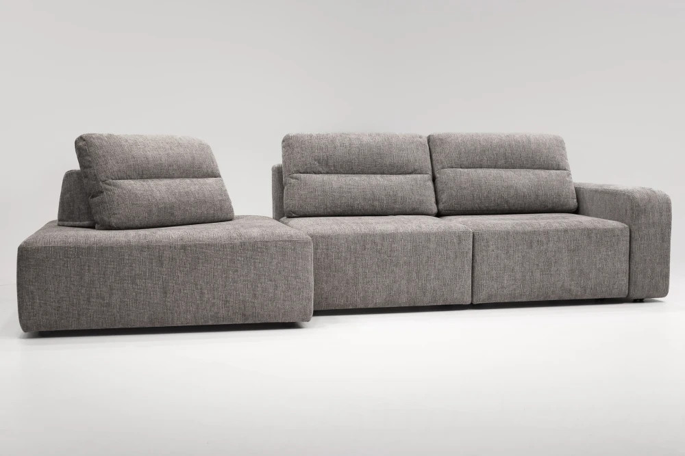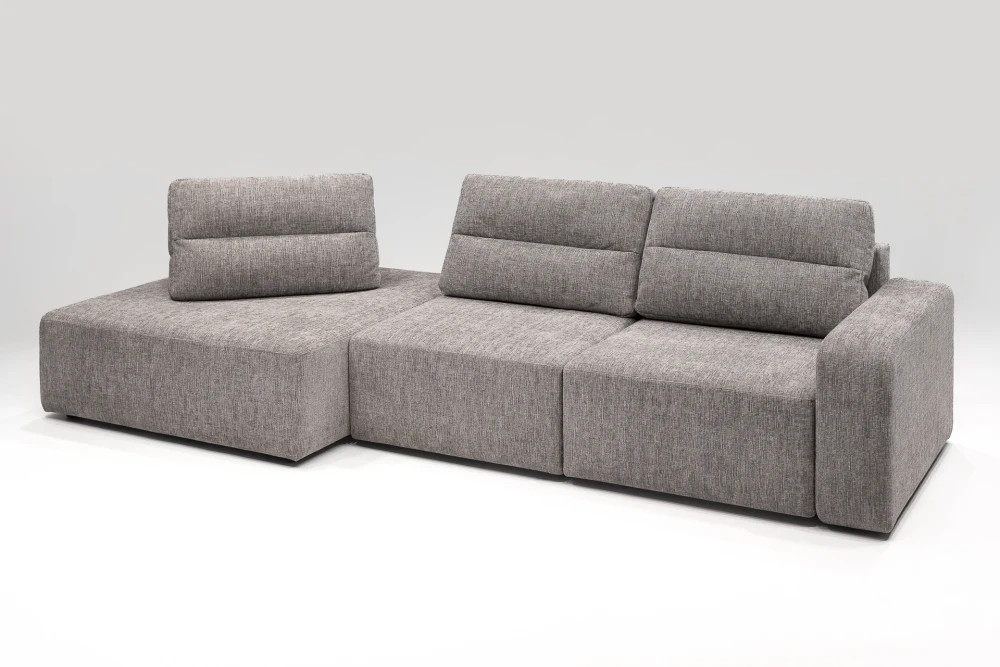 Погрузитесь в мир дизайна с модульным диваном, который легко меняет конфигурацию и позволяет расположиться на нем с комфортом. Передвижная подушка с утяжелителем добавляет функциональности, а пуф предлагает как прямой, так и скошенный угол, обеспечивая максимальный стиль в вашем интерьере.