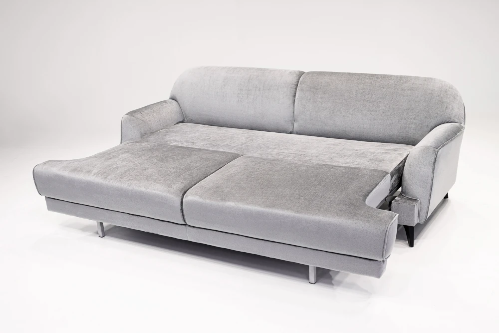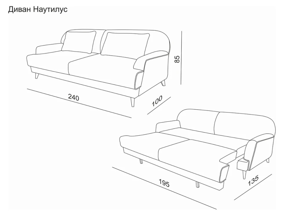 Лаконичный, но не лишенный шарма диван Наутилус. Отличительные черты дивана – плавность линий, удобство и функциональность. Глубокое широкое сидение и съемные дополнительные подушки дают возможность свободно расположиться во время отдыха. Удобный механизм трансформации дает возможность использовать диван для сна каждый день. Диван аккуратно украшают высокие изящные наклонные ножки, высота которых позволяет проводить уборку под диваном.
