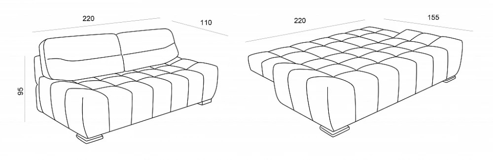 Диван "Румба" — стильный диван без подлокотников. Его спинка и сиденье разбиты на сектора  в форме квадратов, придавая минималистичный вид. Диван легко трансформируется в кровать. Оснащен ящиком для хранения.