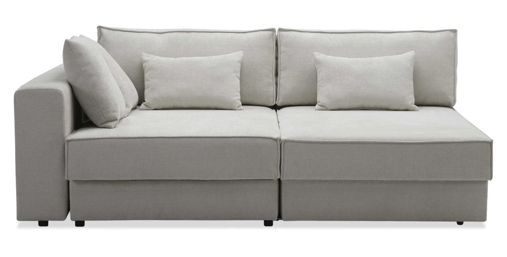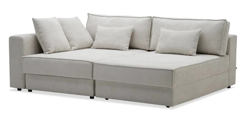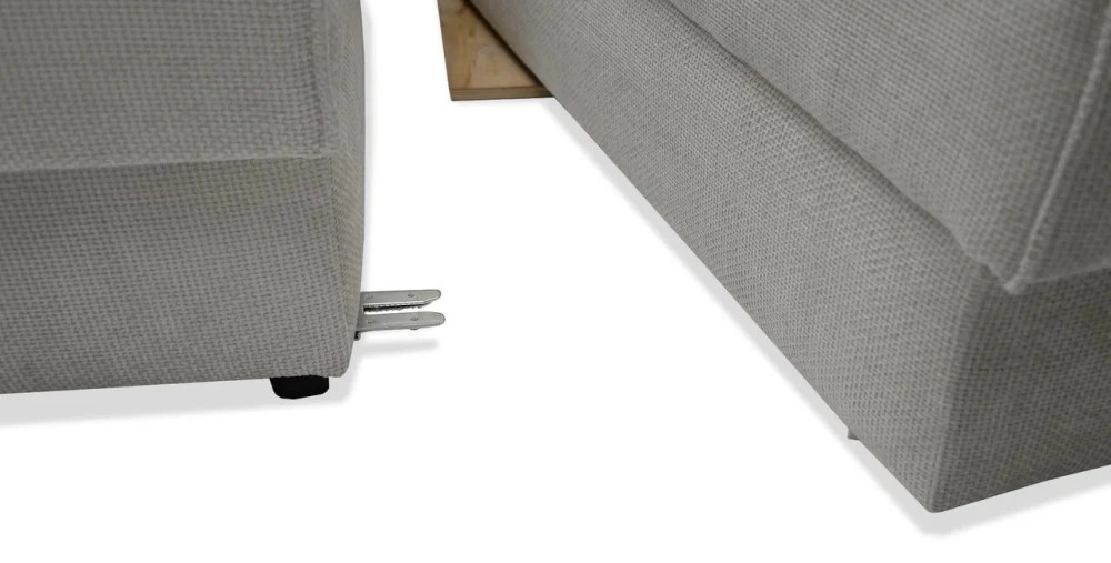 Модуль оттоманки, входящий в систему оснащен бельевым ящиком, который может служить местом хранения или постельного белья, или других важных для Вас вещей. Газ лифты с фиксаторами. Универсальное угловое крепление на зацепах “краб” позволяет легко и быстро трансформировать диван в угловое положение, а благодаря скрытому размещению, оно не портит внешний вид дивана.