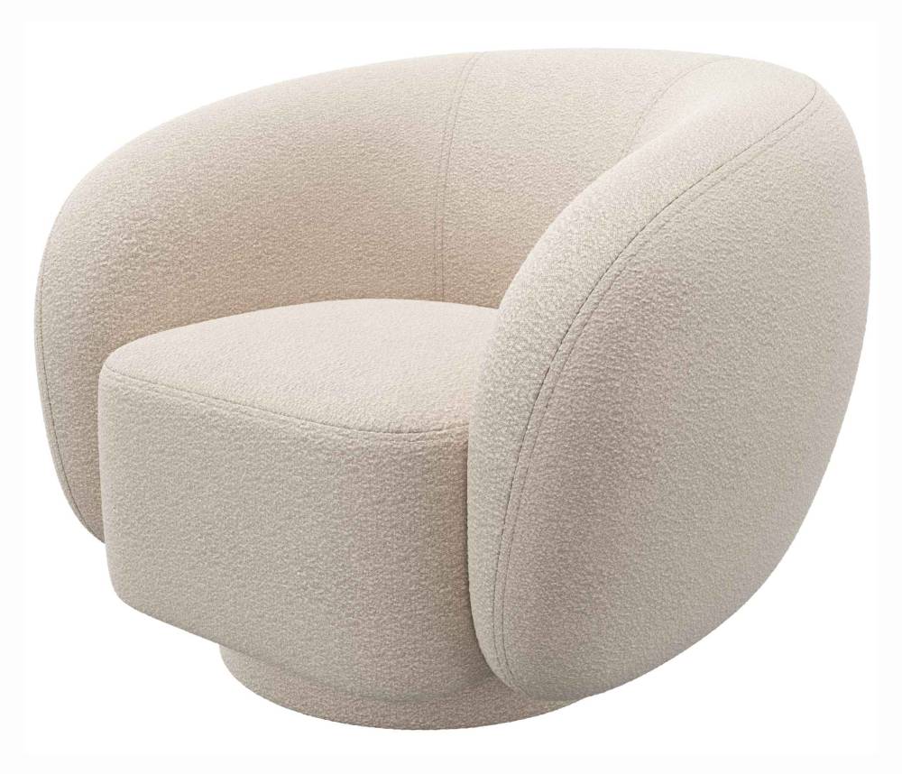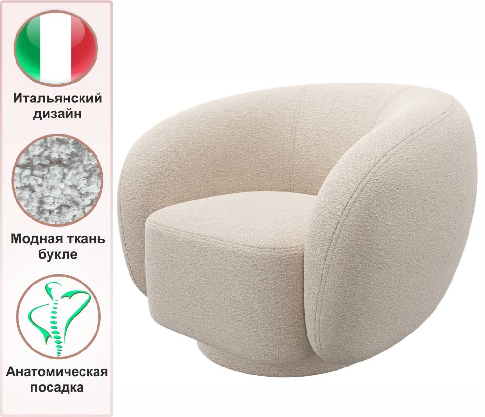 Интерьерное кресло Plushe (Плюше) из ткани букле (барашек) имеет мягкую высокую спинку с аккуратной декоративной прострочкой.