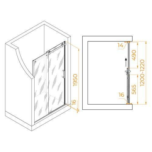 Общая высота двери составляет 1950 мм, позволяя ей легко пропускать даже самых высоких людей. Конструкция раздвижных дверей делает использование двери удобнее и экономит место в ванной комнате. Двойные ролики плавно и бесшумно открывают и закрывают дверь.