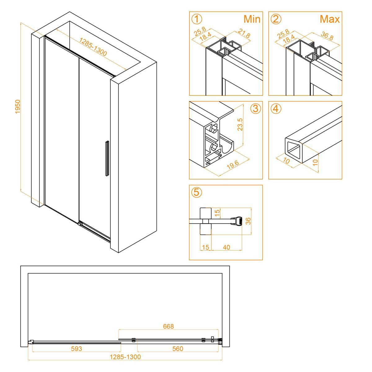 Эта душевая дверь общей высотой 1950 мм обеспечивает достаточное прикрытие и конфиденциальность. Кроме того, он поставляется с дополнительным профилем для дополнительной поддержки и стабильности. 2-й класс герметичности гарантирует, что вода останется внутри душевой зоны, что предотвратит любые протечки или разливы.