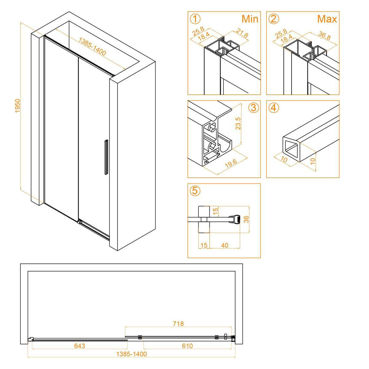 Высота двери составляет 1950 мм, что позволяет легко пройти сквозь нее даже высоким людям. Конструкция раздвижных дверей позволяет с легкостью открывать и закрывать их, что делает ваш душ более функциональным и удобным.