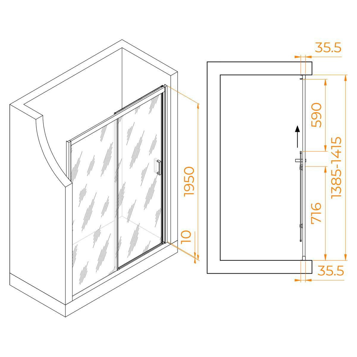 Душевая дверь 140х195cм раздвижная RGW PA-017-B Черный / Матовое закаленное стекло 350801714-24