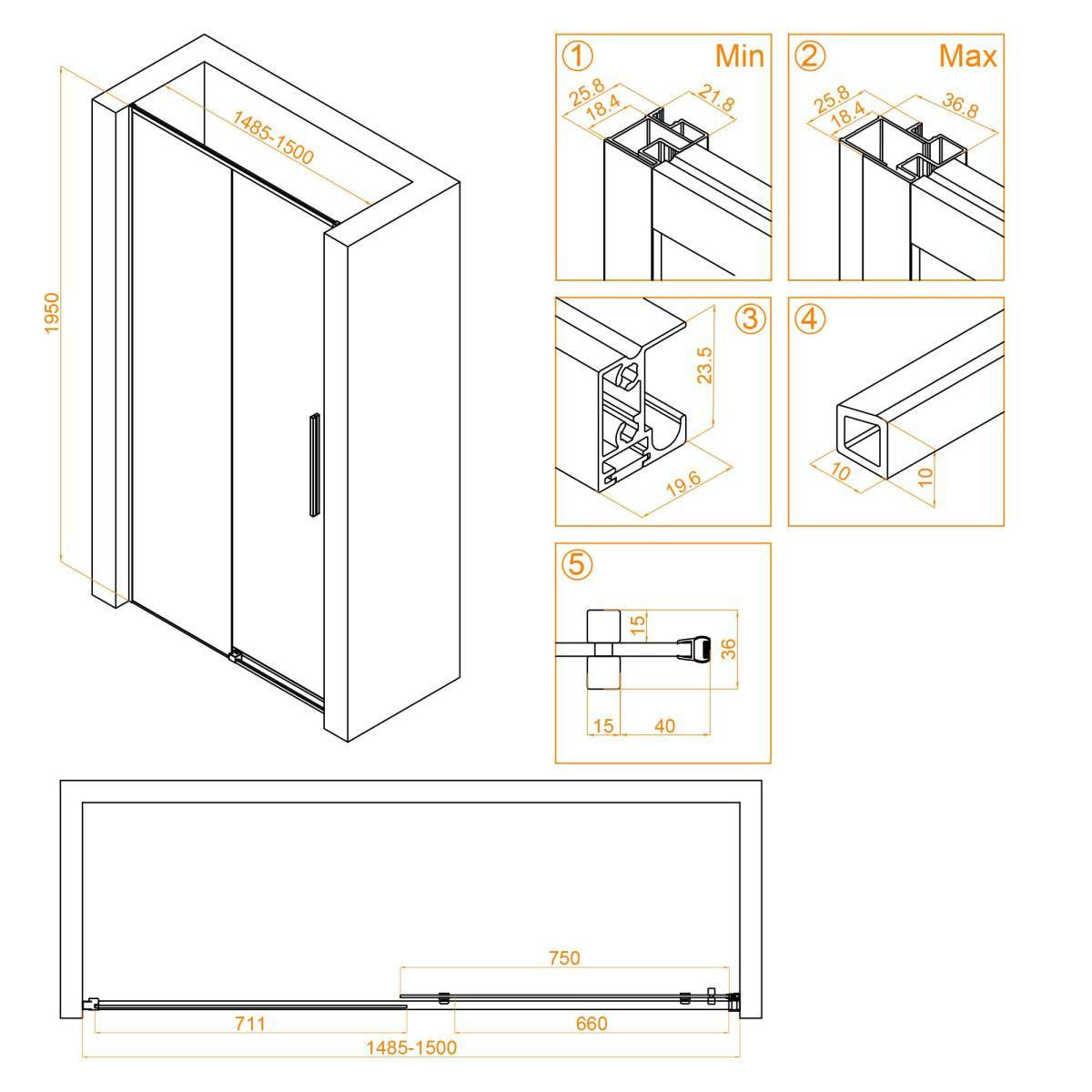 Высота двери составляет 1950 мм, что позволяет легко пройти сквозь нее даже высоким людям. Конструкция раздвижных дверей позволяет с легкостью открывать и закрывать их, что делает ваш душ более функциональным и удобным.
