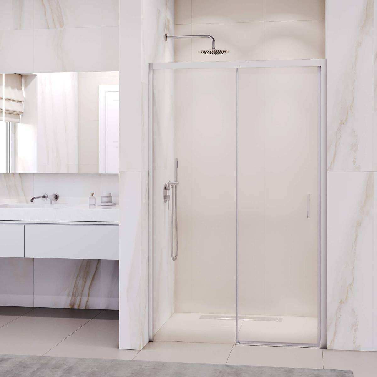 Механизм на роликовых подшипниках обеспечивает плавное и легкое скольжение двери, обеспечивая удобство принятия душа. Функция легкой очистки упрощает уход, поскольку предотвращает накопление мыльной пены и пятен от воды на поверхности стекла.