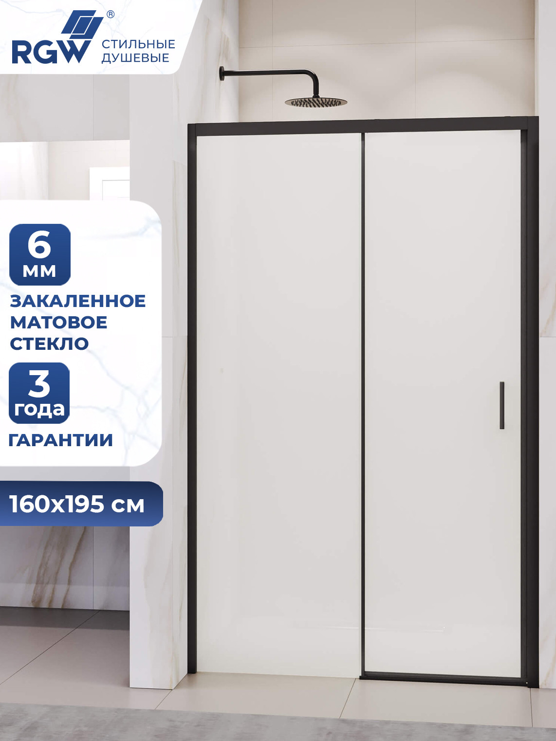 Душевая дверь 160х195см раздвижная RGW PA-017B Черный / матовое закаленное стекло 350801716-24