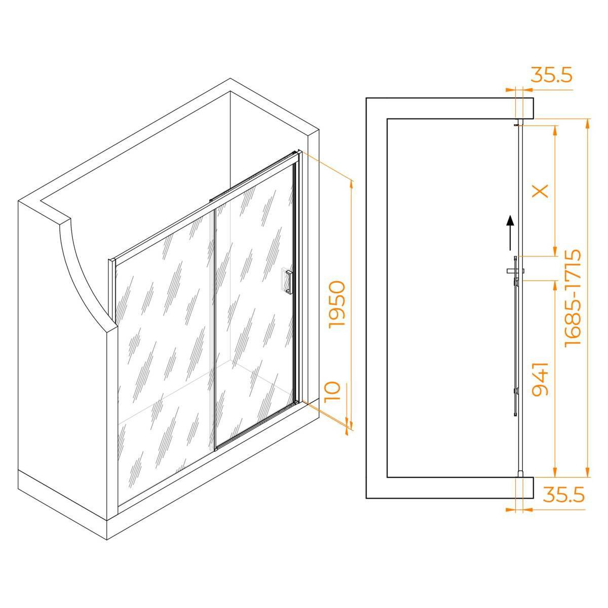 Конструкция дверей раздвижная, это позволяет максимально использовать доступное пространство в ванной комнате. Роликовый подшипник и регулируемый профиль упрощают установку и обеспечивают гладкое и бесшумное движение дверей.