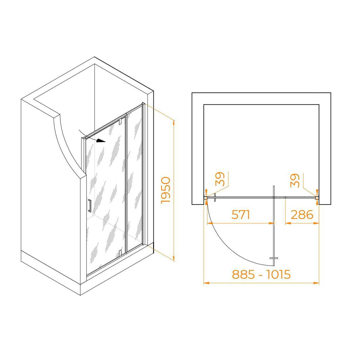 Дверь изготовлена из стекла толщиной 6 мм, которое обеспечивает надежную защиту от брызг и позволяет сохранить тепло и комфорт внутри душевого пространства. Цвет стекла - прозрачный, что придает двери элегантный и современный вид.