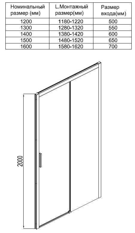 Душевая дверь Aquanet Pleasure AE60-N-150H200U-BT 150, прозрачное стекло