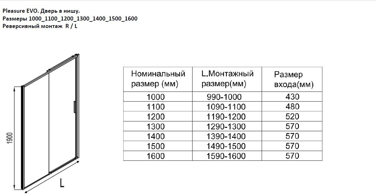 Высота, мм: 1900