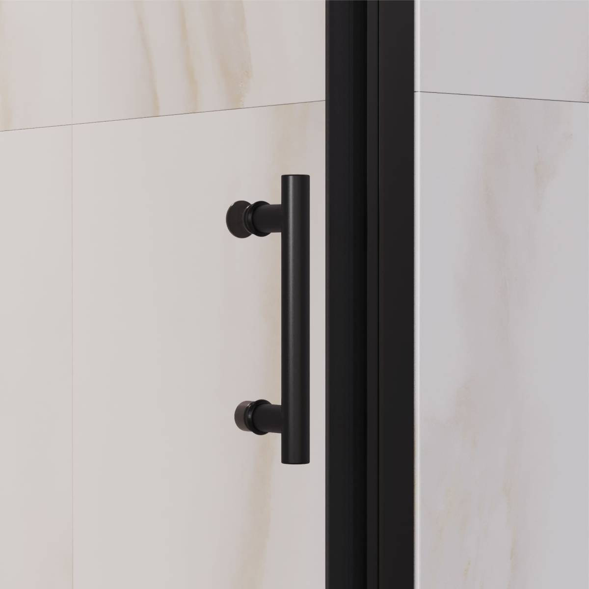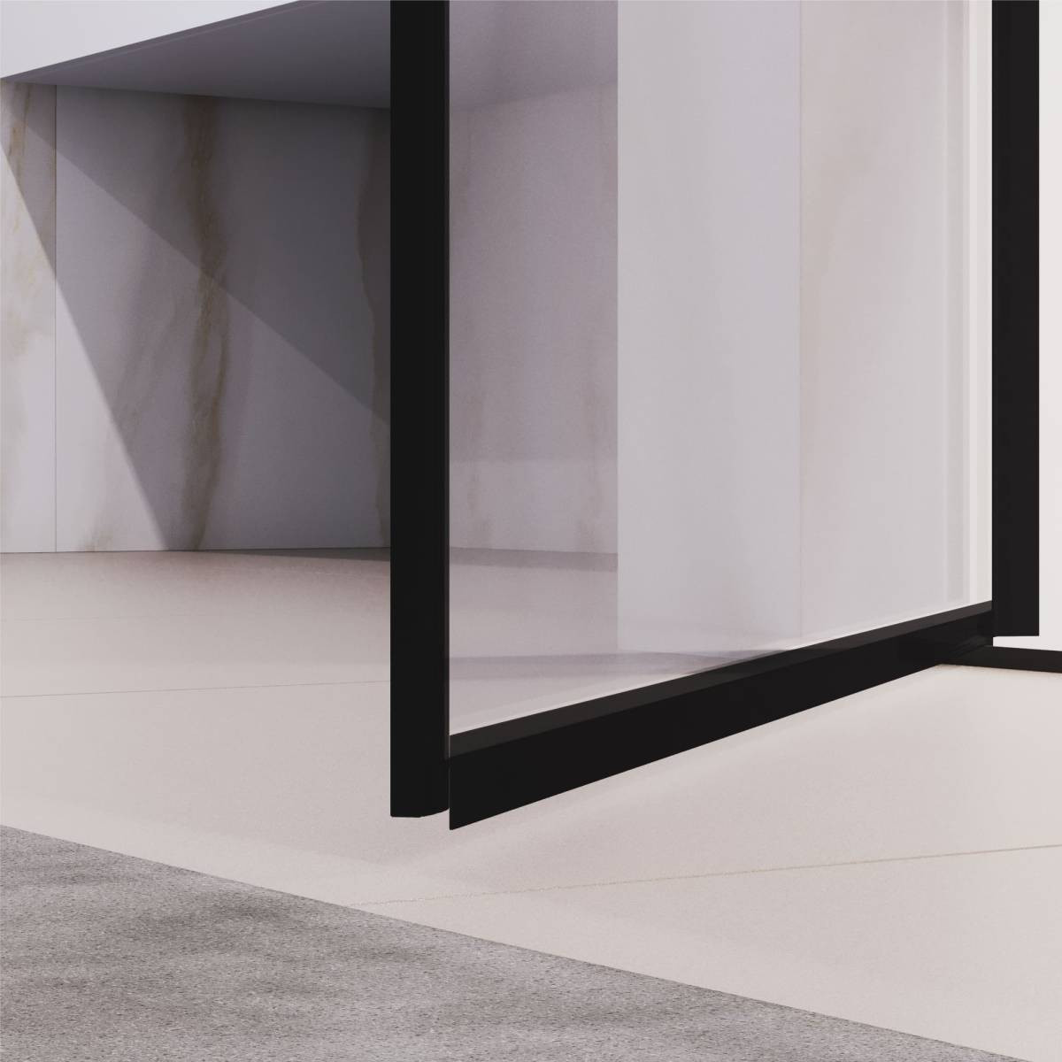 Дверь имеет нижний уплотнитель – ресничку, защищающую от протечек собирая воду со стекла во внутреннее пространство душевой при открытии двери, черный силикон в цвет фурнитуры.