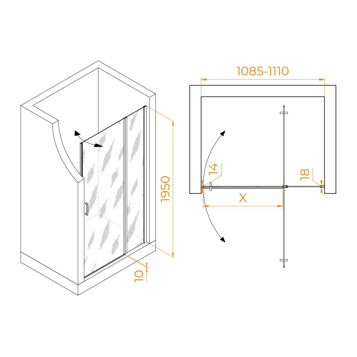Душевая дверь распашная RGW LE-004 110х195 см, Хром / Прозрачное стекло 351200411-11