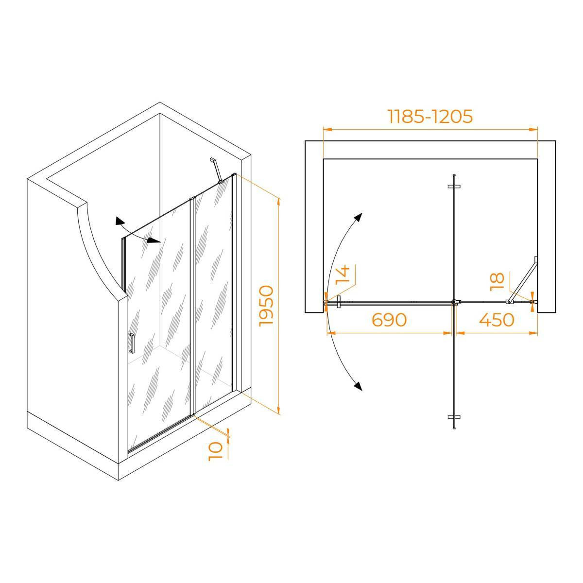 Душевая дверь распашная RGW LE-004-B 120х195 см, Чёрный / Прозрачное стекло 351200412-14