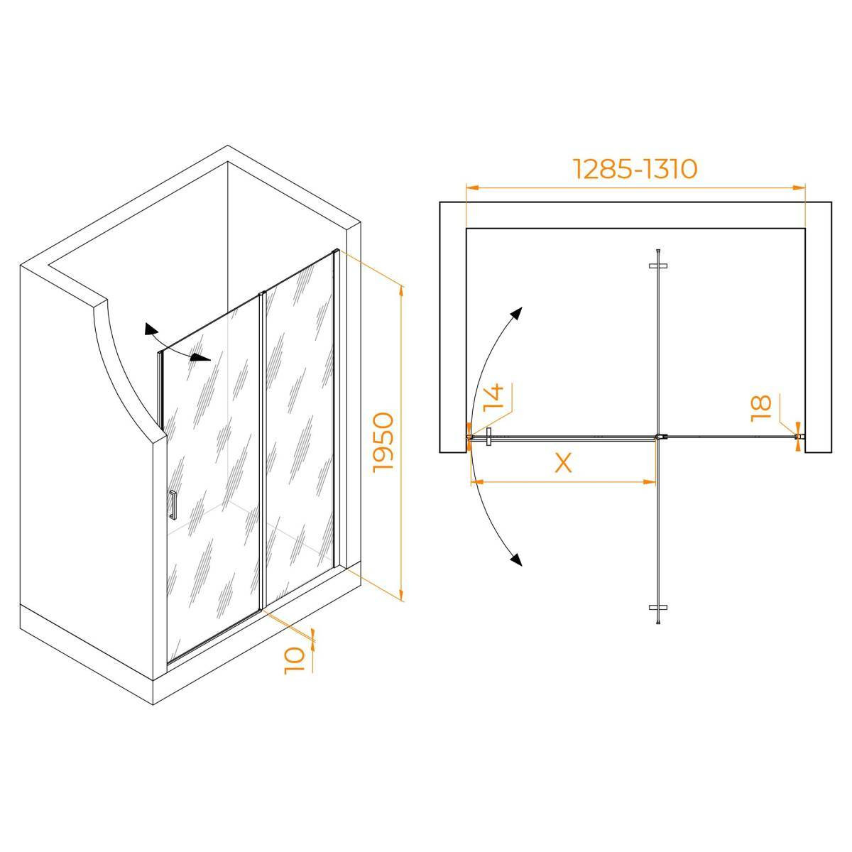 Душевая дверь распашная RGW LE-004-Gr 130х195 см, Серый / Прозрачное стекло 351200413-110