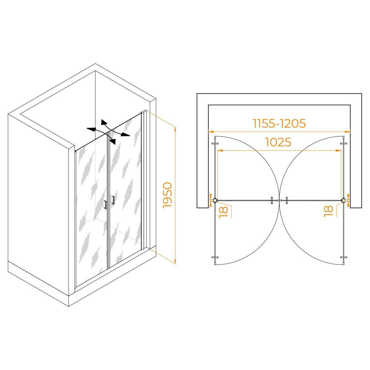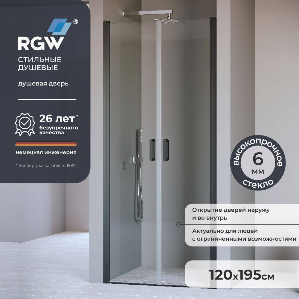 Душевая дверь распашная RGW PA-104-B (1155-1205)х1950 мм, двустворчатая, маятниковая Черный 060810412-14
