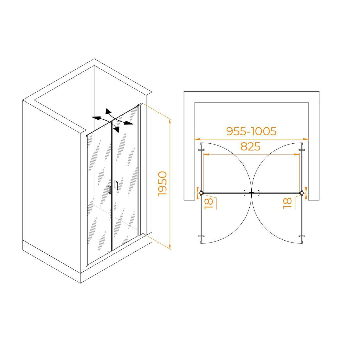 Душевая дверь распашная RGW PA-104-G (955-1005)х1950 мм, двустворчатая, маятниковая , Золото 060810410-16