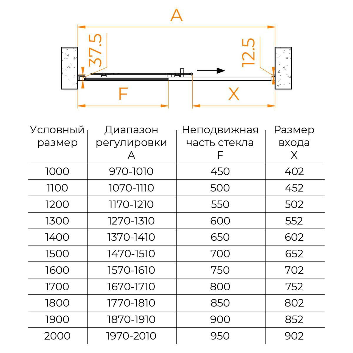 Функция регулируемого профиля обеспечивает легкую установку и настройку. Это обеспечивает идеальную посадку для вашей конкретной душевой зоны, устраняя любые зазоры или утечки. Роликовый подшипниковый механизм обеспечивает долгую и плавную работу двери.