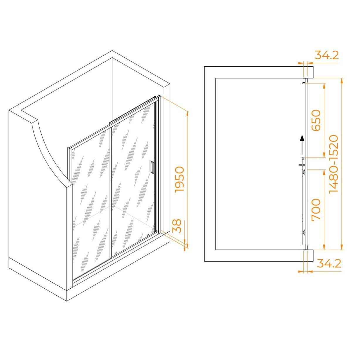 Толщина стекла двери составляет 6 мм и обладает высокой прочностью. Материал стекла выбран прозрачный, что позволяет сохранить пространственную свободу и прозрачность в ванной комнате. Цвет профиля двери выполнен в белом исполнении.