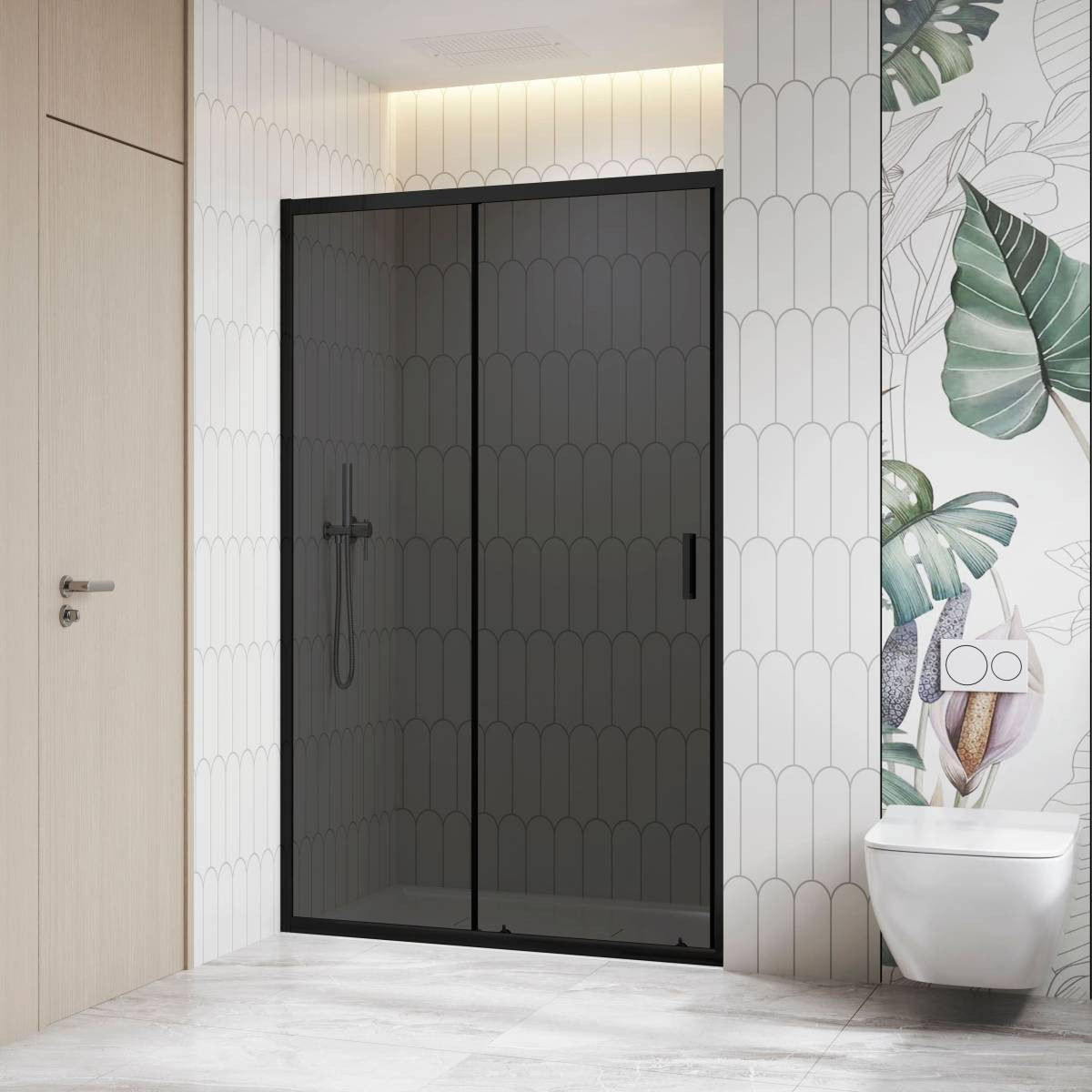 Душевая дверь, раздвижная, алюминиевый профиль в хромированной и черной отделке, пристенный профиль с регулировкой 15 мм, двойные ролики из ABS-пластика, закаленное стекло толщиной 6 мм, двойная цинковая ручка 145 мм, магнитные уплотнители из ПВХ. Логотип RGW на стекле. Инструкция, гарантийный талон и памятка входят в состав набора.